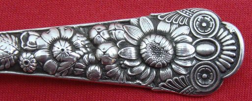 Beautiful all sterling silver salad set made by Gorham. The overall length is 8 1/2". The condition is wonderful; the pattern is clear with nice oxidation. Notice the brite-cut work in the nicely shaped, gold-washed bowls. The date Nov. 27, 1920 is inscribed on the reverse of the handles. The marks are COPYRIGHTED - the old Gorham symbol - STERLING. Click on "More Images" above to view detail images