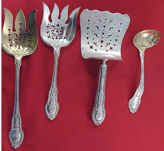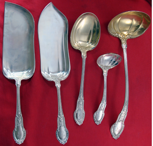 Fish Set, Gravy Ladle (2), Ice Cream Slice, Ice Spoon, Salad Set, Sauce Ladle, Soup Ladle, Sugar Sifter, Sugar Tongs,