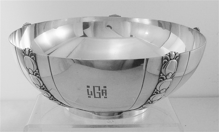 Elegant sterling silver FRUIT BOWL by TIFFANY & CO. in the very desirable VINE TOMATO or PUMKIN pattern. The diameter is 9 1/4"; the height is 3 5/8"; the weight is 26.37 Troy Oz. The condition is excellent except for some light surface scratches consistent with usage.